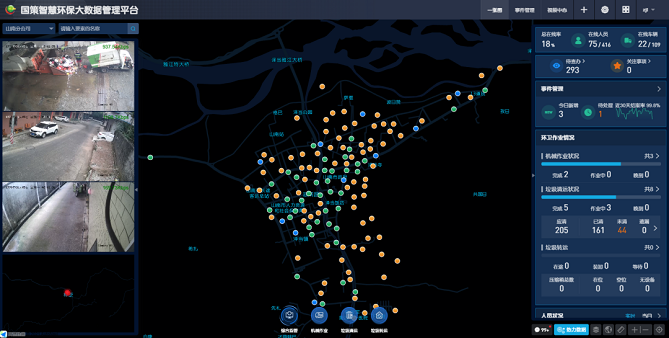 國策環(huán)保在投入機械化同時配套完善了智慧環(huán)保平臺建設,以感知設備、智能終端等構建的物聯(lián)感層與智慧環(huán)保平臺共同發(fā)揮了對環(huán)衛(wèi)各要素等進行全程實時管控和作業(yè)優(yōu)化,國策各分級指揮中心實現(xiàn)了對工作人員的精準調(diào)配,提高了工作效率。與此同時來自于甲方對質(zhì)量的監(jiān)管及公眾的投訴建議與國策智慧環(huán)保保持高效互動,更進一步改善城市公共環(huán)境質(zhì)量。
